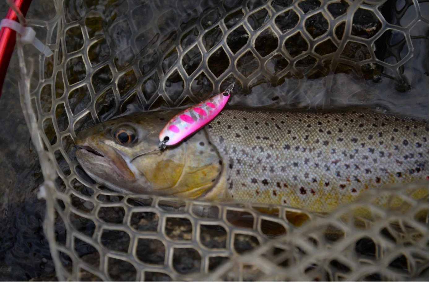 J’affectionne aussi particulièrement la pêche à la cuillère ondulante en début de saison. La réputation des leurres métalliques n’est plus à prouver par temps froid et elles permettent de pêcher en confiance, même si les poissons sont apathiques.
